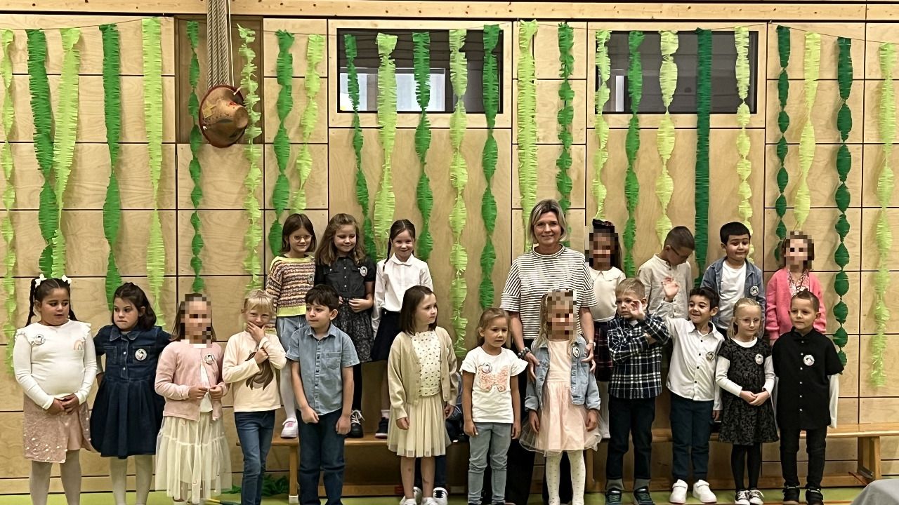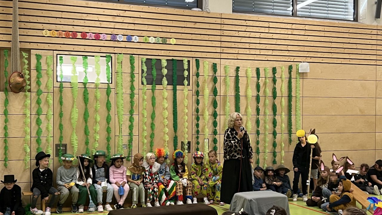 Im Anschluss fand die eigentliche Einschulungsfeier in der Turnhalle der Grundschule statt. Nach der Begrüßung durch den Chor und Frau Lohmann präsentierten die Zweitklässler das Theaterstück „Der Hase mit den himmelblauen Ohren“. Danach wurden die neuen Erstklässler in ihre Klassen eingeteilt. Die ersten Unterrichtsstunde der neuen Schulanfänger fanden in der Zebraklasse von Frau Schneider und in der Erdmännchenklasse von Frau Müller-Elser statt. Wir wünschen allen Zebras und Erdmännchen eine tolle und spannende Schulzeit!