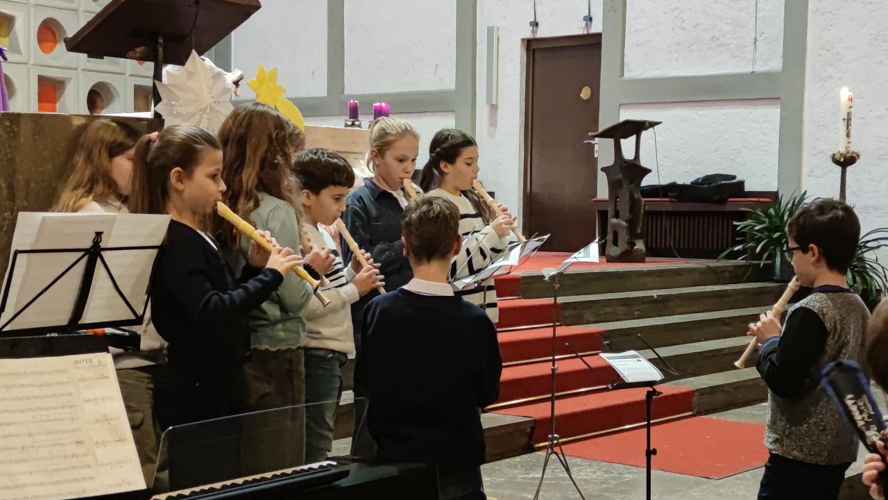 Am 13.12. trafen wir uns zur jährlichen Weihnachtsfeier in der Marienkirche. In diesem Jahr drehte es sich alles um die Frage: Warum feiern wir eigentlich Weihnachten? Dass es bei Weihnachten um mehr als die Geschenke geht, erfuhren wir in einem Krippenspiel, das Frau Schmitt, Frau Wagner und Frau Walz-Beigel gemeinsam mit Kindern aller Klassenstufen aufführten. Umrahmt wurde das Ganze von verschiedenen musikalischen Beiträgen der Klassen und des Chores.