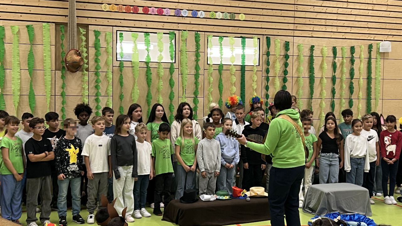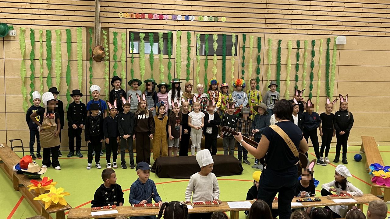 Im Anschluss fand die eigentliche Einschulungsfeier in der Turnhalle der Grundschule statt. Nach der Begrüßung durch den Chor und Frau Lohmann präsentierten die Zweitklässler das Theaterstück „Der Hase mit den himmelblauen Ohren“. Danach wurden die neuen Erstklässler in ihre Klassen eingeteilt. Die ersten Unterrichtsstunde der neuen Schulanfänger fanden in der Zebraklasse von Frau Schneider und in der Erdmännchenklasse von Frau Müller-Elser statt. Wir wünschen allen Zebras und Erdmännchen eine tolle und spannende Schulzeit!