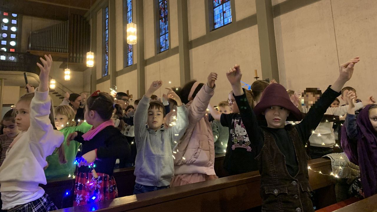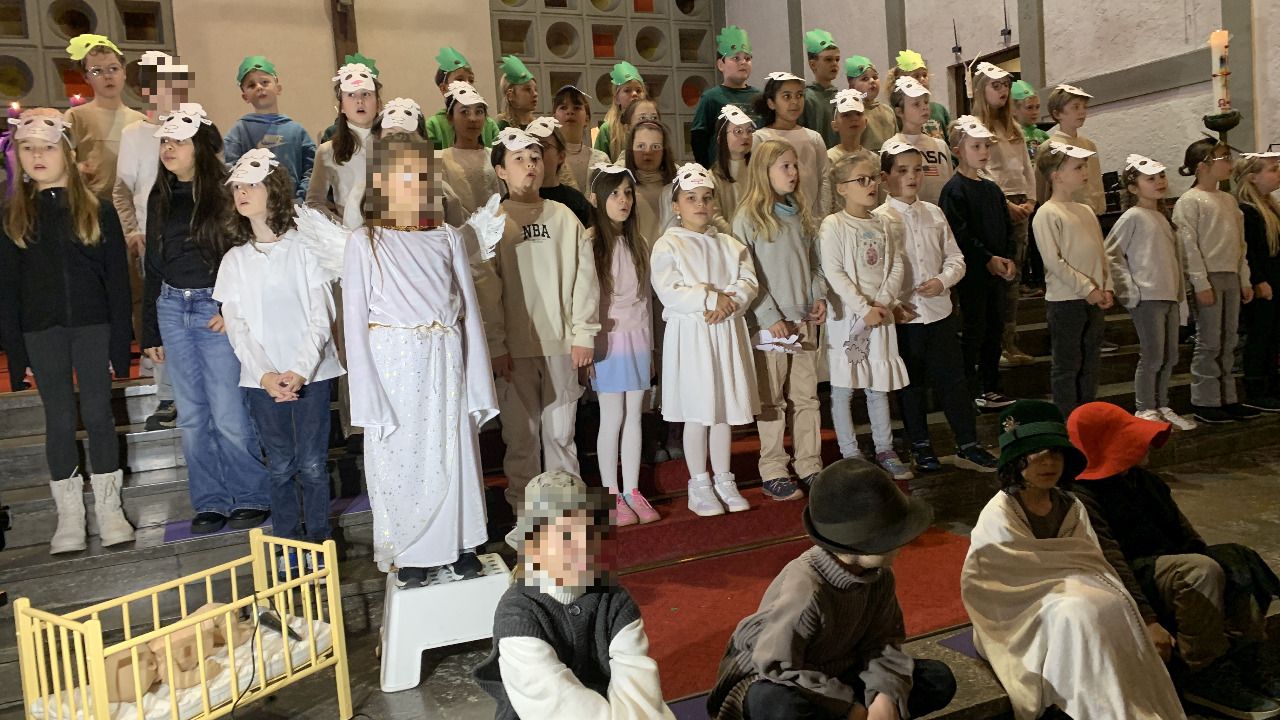 Frau Walz-Beigel hatte mit den Chorkindern und ihren Musikklassen stimmungsvolle Lieder einstudiert, die die Feier passend umrahmten.